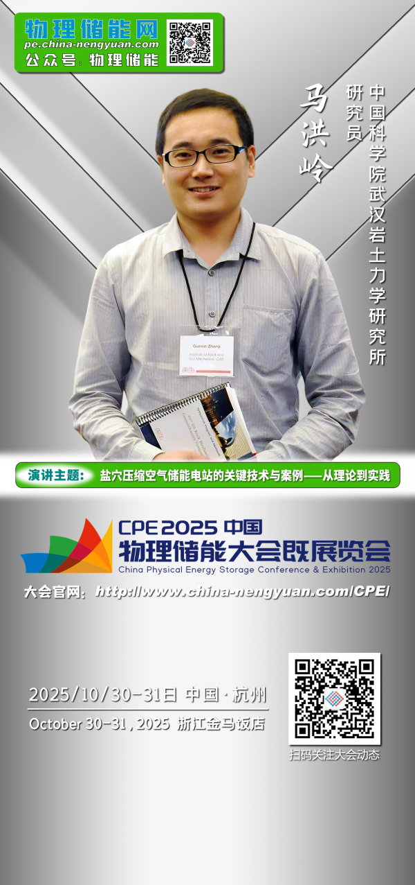 本次大会有幸邀请到中国科学院武汉岩土力学研究所研究员马洪岭出席。马先生将在大会现场发表题为“盐穴压缩空气储能电站的关键技术与案例——从理论到实践”的主题演讲。