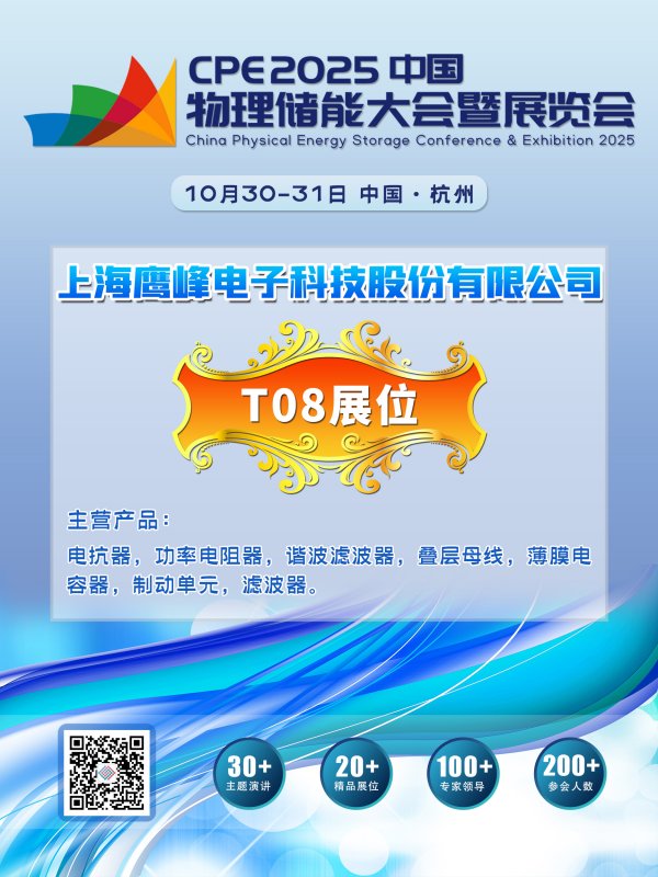 上海鹰峰电子科技股份有限公司将亮相《CPE 2025中国物理储能大会暨展览会》,欢迎各位莅临其展位参观。