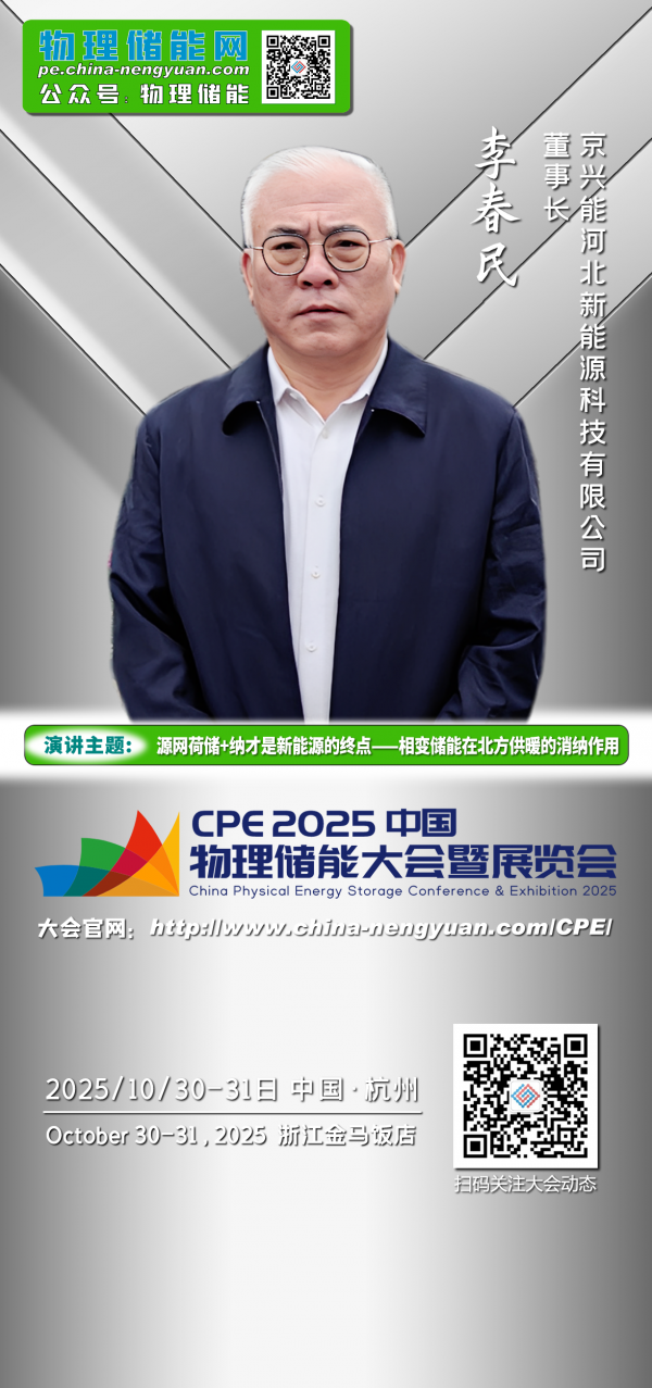 由物理储能网(pe.china-nengyuan.com)、中国新能源网(china-nengyuan.com)、全球储能网(es.china-nengyuan.com)联合旗下各平台及业内同仁共同发起的《CPE 2025中国物理储能大会暨展览会》将于10月30-31日在浙江杭州金马饭店隆重举行。