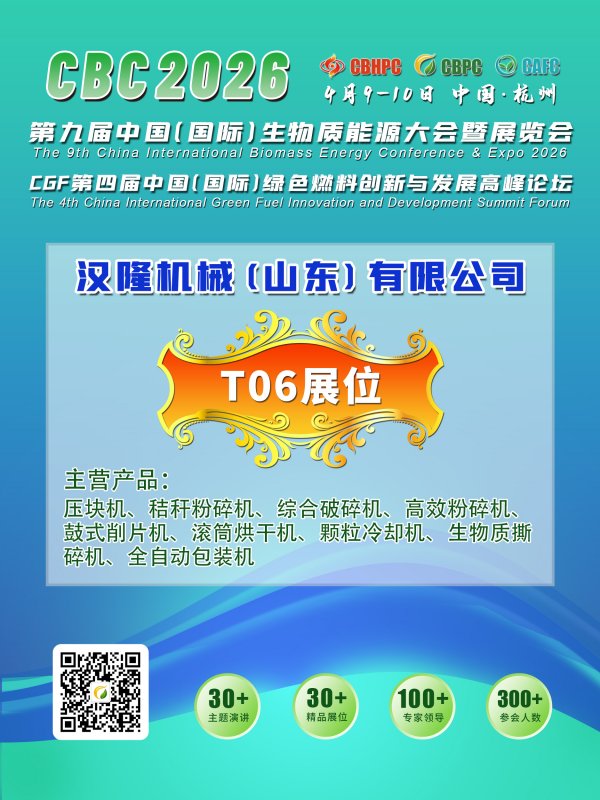 汉隆机械(山东)有限公司将亮相《CBC 2026第九届中国(国际)生物质能源大会暨展览会》,欢迎莅临其展位参观。