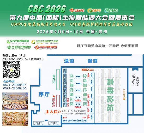 由新能源网(china-nengyuan.com)、全球生物质能源网(bio.china-nengyuan.com)、51生物质颗粒交易网(51keli.com)齐聚旗下各平台及业内同仁共同联合发起的《CBC 2026第九届中国(国际)生物质能大会暨展览会》4月9-10日将在浙江杭州萧山开元宾馆隆重举行。