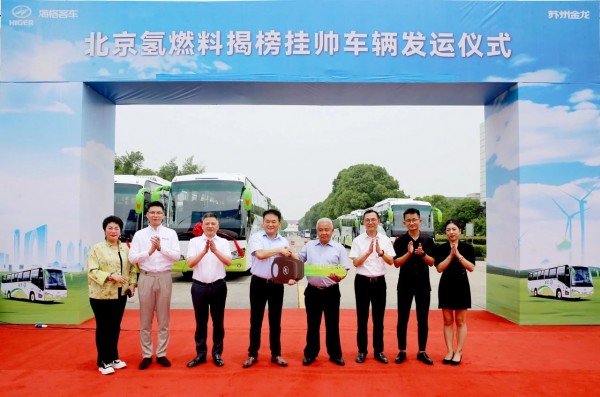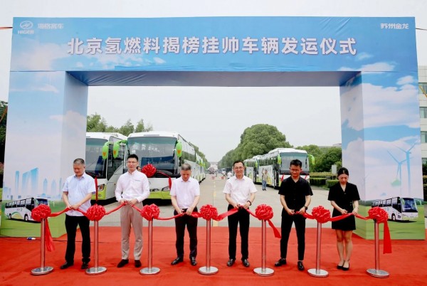 7月3日,新研氢能与金龙联合汽车工业(苏州)有限公司(苏州金龙)、北京赶趟出行科技有限公司(赶趟出行)在苏州联合举行“北京氢燃料揭榜挂帅车辆发运仪式”。现场首批20辆由赶趟出行订购,安装新研氢能燃料电池系统的苏州金龙海格客车即将发往北京。这是合作三方首度将氢能源客车批量打入北京市场,同时也实现了科技产品、商业价值和社会价值的联合驱动。