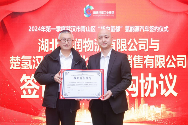 此次武汉市青山区2024年第一季度“华中氢都”氢能源汽车签约大会上,东风商用车有限公司对楚氢汉融汽车销售公司进行授权授牌仪式。同时,东风商用车有限公司与融通汽车集团、青山区人民政府签订战略合作协议,三方共同携手将“华中氢都”做强做大。