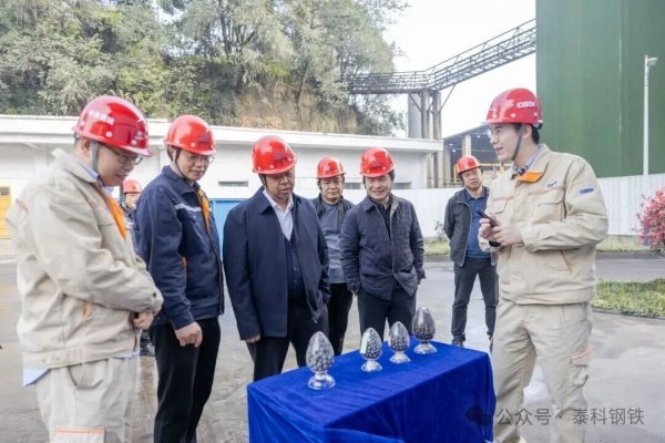 调研期间,张天福一行首先深入氢基竖炉中试项目现场。在现场,张天福详细听取了现场人员关于工艺流程、技术难点及产品特点的介绍,并就关键技术与现场人员进行了深入交流。对川威集团在绿色生产转型及资源高效综合利用方面取得的突破性成果给予了高度评价。