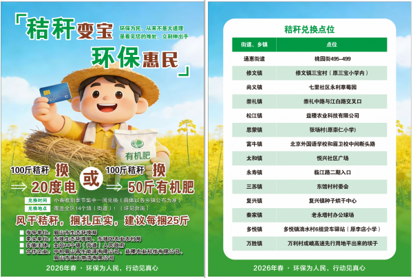 届时,农户只需把秸秆就近送到服务点,便能将秸秆兑换成电或有机肥,而回收的秸秆则将被用于清洁发电和有机肥加工,实现“秸秆废料”变“真金白银”。目前,首批14个服务点已在东坡区布设到位,启动后,将依托 “环保夜市” 生态志愿服务逐步向全市推广。