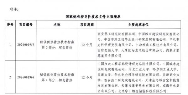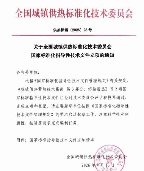 依据《国家标准化指导性技术文件管理规定》,全国城镇供热标准化技术委员会已完成《城镇供热蓄热技术指南第4部分:相变蓄热》国家标准化指导性技术文件的评估、投票与立项登记,正式启动标准编制工作。