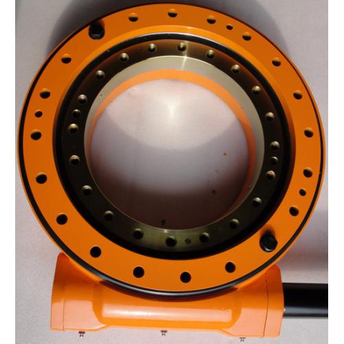 回转式减速器由于采用回转支承和环面包络蜗杆结构,能达到多齿接触,具有传动扭距大,运行平稳等特点;能承受较大的径向、轴向载荷以及较强的倾覆力矩(抗风阻能力),正被国内外客户广泛应用于太阳能光伏发电跟踪系统及其他新能源行业。产品目前有从3英寸直径到25英寸直径等9个型号,60多个品种,能满足不同形式的光伏、光电、光热普通和精密跟踪需求。