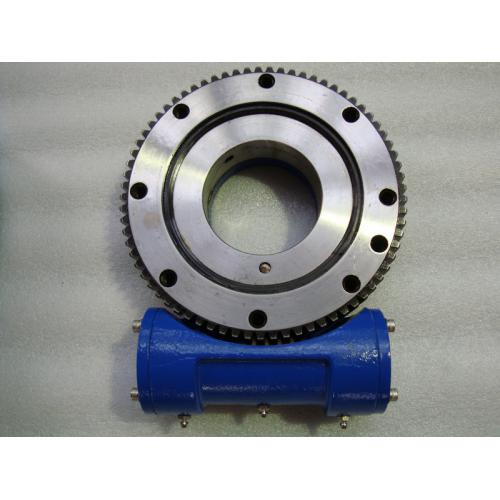 回转式减速器由于采用回转支承和环面包络蜗杆结构,能达到多齿接触,具有传动扭距大,运行平稳等特点;能承受较大的径向、轴向载荷以及较强的倾覆力矩(抗风阻能力),正被国内外客户广泛应用于太阳能光伏发电跟踪系统及其他新能源行业。产品目前有从3英寸直径到25英寸直径等9个型号,60多个品种,能满足不同形式的光伏、光电、光热普通和精密跟踪需求。