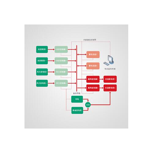 系统采用共直流母线方式,组网灵活,可以依据需要增加风光发电单元数量,方便后续的扩容及发电单元维护;