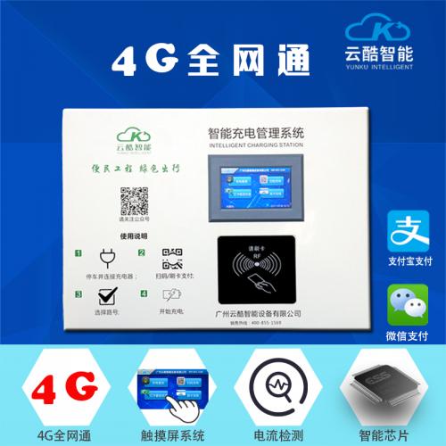 云酷智能充电管理系统由一台控制器外加12个二孔插座(选配)构成,控制器内可装数字电度表(选配)及漏电开关保护器(标配)。控制器有12路供电端口,控制器标配一个4.3英寸触控彩色液晶屏。考虑为适应不同型号的电动车充电,控制器输出的是220V电源,电动车充电时还需要插接自带的充电器。