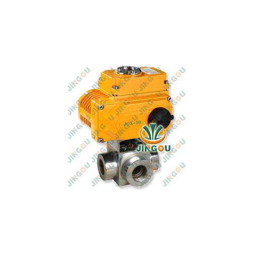 电动高压三通球阀分L型和T型,介质流通方向见下图。L型电动高压三通球阀适用于介质流向的切换,能使相互垂直的两个通道连通:T型电动高压三通球阀适用于介质的分流、合流或流向 切换,T型孔道可以使三个通道互相连通或使其中两个通道连通,电动高压三通球阀一般采用三个阀座结构,亦可根据用户要求采用四阀座结构。