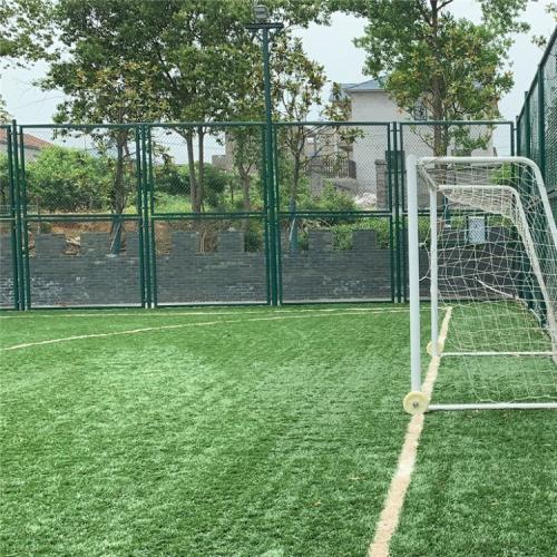 5人制足球场专用围网尺寸 1包塑丝经:4.0mm 。 2.网孔:50mm×50mm;60mm×60mm; 3.尺寸:3000mm(宽度)×3000mm-4000mm(高度); 4.立柱:直径75mm圆管,壁厚2.5mm; 5.横柱:直径60mm圆管,壁厚2mm;
