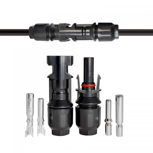 车件端子压接式 2.5/4/6兼容MC4光伏连接器 用于太阳能光伏发电系统中线与线的连接,如∶电池板输出电源接入汇流箱;然后再接入逆变器或控制器、配电柜等等设备当中. 目录很多组件、逆变器、蓄电池、配电柜等设备上都会安装面板连接器,这款线端连接器可与其匹配使用,简化后续的安装过程。