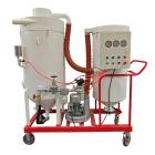 该设备采用压缩空气做动力,将磨料高速喷射到待处理表面,经过磨料冲击,把工件表面锈污、型砂、黑皮、漆皮、氧化皮等杂物剥落清理还原金属或非金属工件本色,表面得到工艺要求的清洁度和粗糙度,通过砂尘分离系统将砂料和粉尘自动分选分离,分选出来的磨料继续循环使用,粉尘与锈污、型砂收入集尘桶。在手把开关控制下,设备喷砂、回收、沙尘分离、砂料循环、粉尘过滤等所有工作“一气呵成”。