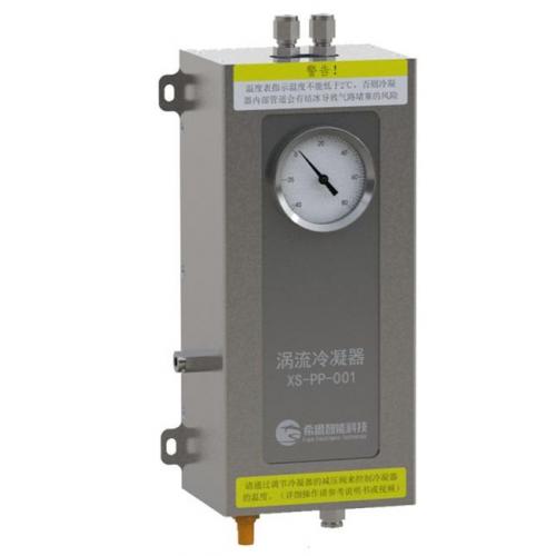 涡流冷凝器是一款以空气动力学和能量守恒定律为原理,采用涡旋制冷技术而设计的防爆型气体除湿器。现场需提供压缩空气,当压缩空气进入涡流室,会分离成热气和冷气两部分,其分离比可以通过调节阀调节。