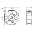 储能调速散热风机,风量906cfm,使用温度:-35摄氏度—85摄氏度,保护功能:锁机保护,软启动,过热保护。60分贝超低噪音。