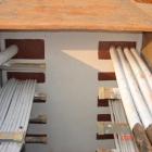 3、 将堵料均匀的铺、嵌、填于孔洞缝隙中,对于较大的孔洞,可先用防火网做骨架,以增加强度。