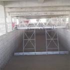 b 两槽分设两端:刮泥耙下降、撇渣耙上提——刮泥机由出水端始点向泥槽端行驶,将污泥刮集输送至终点——刮泥耙上提而撇渣耙下降——刮泥机换向行驶将浮渣撇向浮渣槽——抵达始端后停机或进行另一循环。