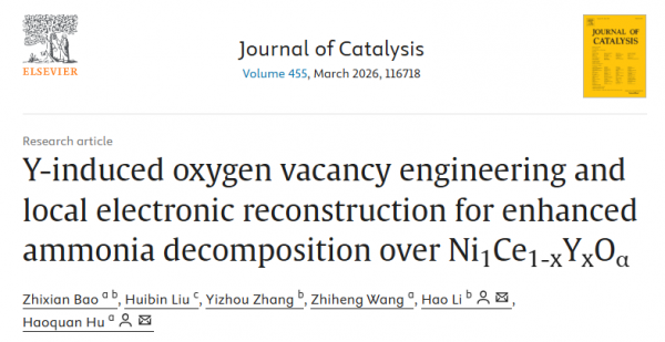 相关研究成果已于2026年1月30日发表在期刊Journal of Catalysis上。